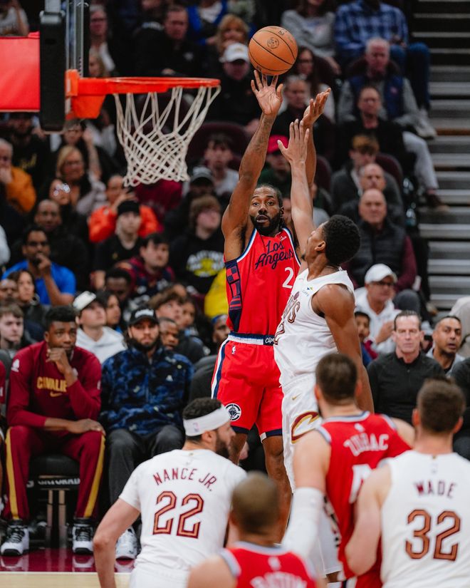 快船队的莱纳德复出回到首发阵容。开场后快船队进入状态较快,哈登命中两球,莱纳德、邓恩轮流得分,他们以15-8领先。韦德跳投还击,祖巴茨、哈登联手5分,快船队扩大优势。米切尔连中两球引领球队打出13-2的小高潮结束首节,骑士队以27-24领先3分。