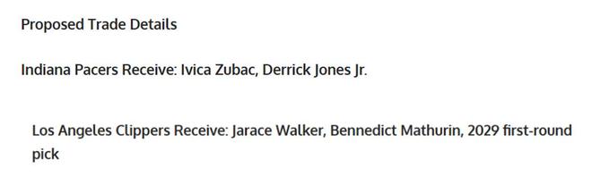 快船得到:马瑟林+贾雷斯-沃克+29年首轮签;
